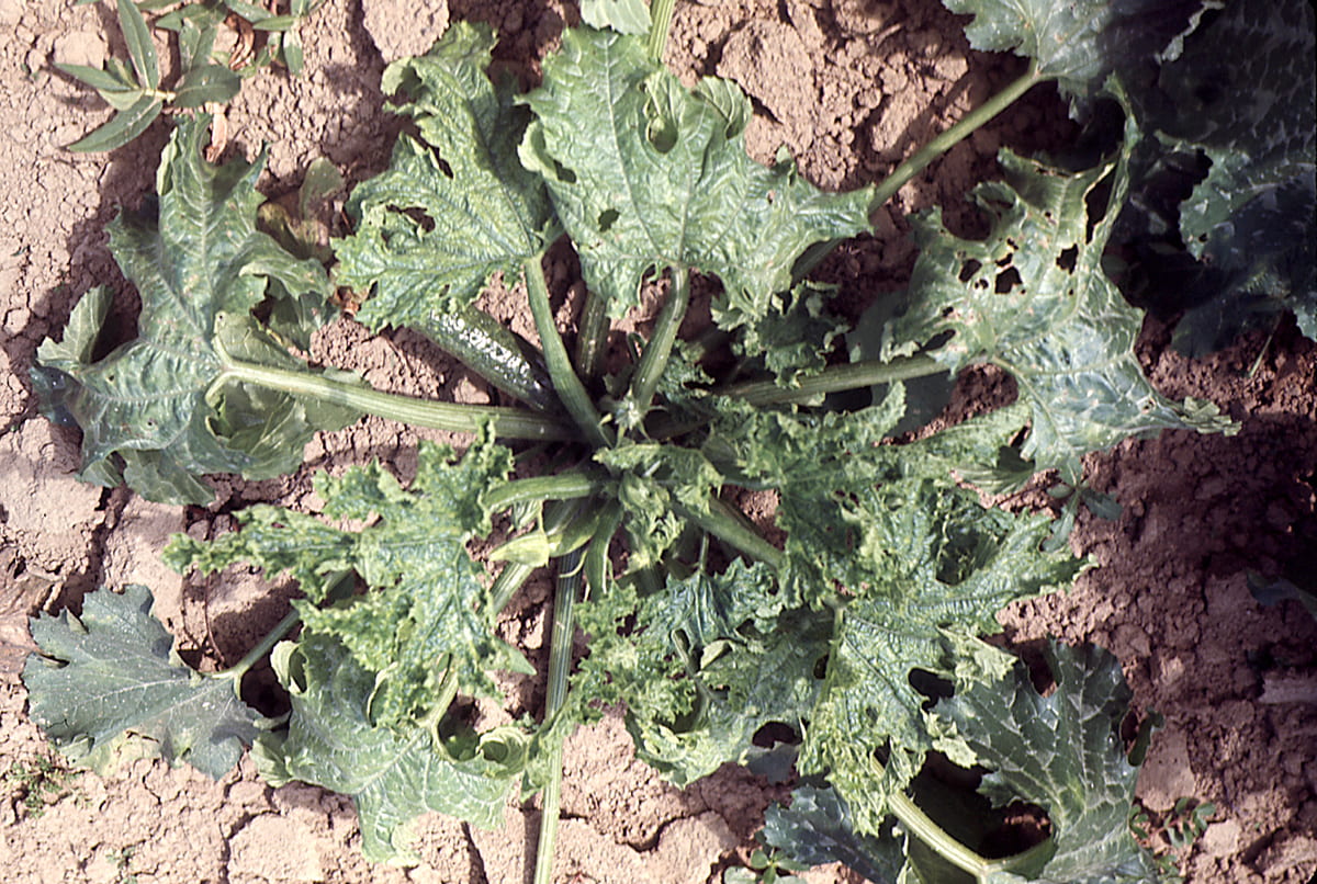 Zucchini Bestände (Cucurbita pepo var. giromontiina) können von verschiedenen Krankheiten und Schädlingen befallen werden. Viruskrankheiten sind dabei wohl das größte Problem.